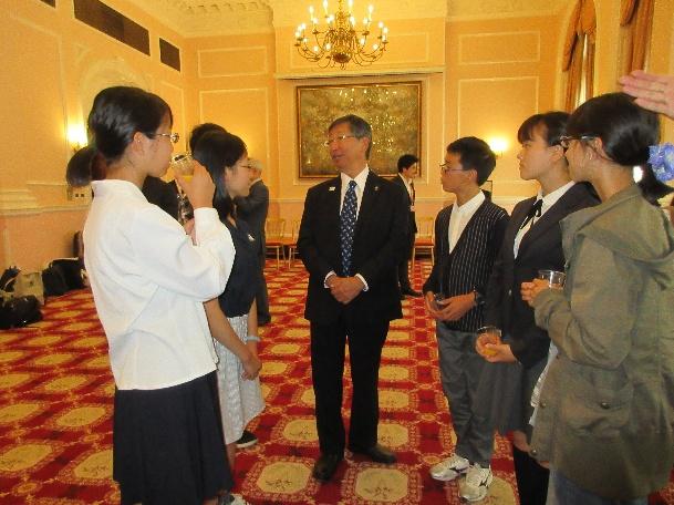 日本に住んでいると周りの人は、みな似たような人ばかりだが、日本以外の世界の国々は 、「多様性」に富んでいる。言い換えれば、日本以外の国は、日常生活が国際 性に富んでいる。これが世界の現状であり、これを実感して、英語を身に着け、日本を世界に発信してもらいたい。と締めくくりました。これをロンドンの日本大使館で、大使から直接聞いた生徒たちは、それぞれに深く心に刻まれ、これからのことを考えたことと思います。
